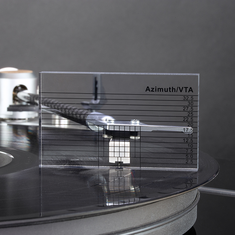 Cette règle Azimut/VTA en verre acrylique de qualité permet de vérifier le parallélisme du bras de lecture (VTA Balance) ainsi que la position perpendiculaire de la cellule (Azimuth) et les ajuster si nécessaire.